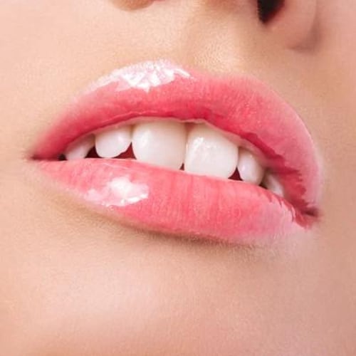鮮やかで魅力的な濃いピンク、ラメ入りのリップ