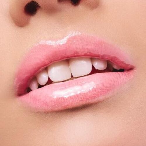 【濃いピンクの艶やかさを引き立てる口元】